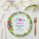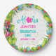 Cette plaque de papier amusante Aloha Graduation Luau présente des fleurs tropicales vives et des feuilles de palmiers, un flamant coloré et est personnalisée avec vos informations sur l'événement. Parfait pour les luau, barbecue ou la fête de la piscine. Invitations personnalisées et accessoires disponibles. Tout ce dont vous avez besoin pour votre journée spéciale !