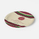 Les couleurs et le motif d'une serape mexicaine typique figurent sur cette assiette de fête du Cinco de Mayo. Les rayures colorées bordent un panneau crème moucheté avec des informations de fête customisées Cinco de Mayo. Un ornement solaire mexicain ancien est ajouté en haut pour l'accent. Disponible avec des produits correspondants.