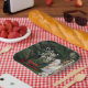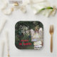 Festive Silent Night Peace On Earth avec un sapin Frasier et des ampoules de vacances à l'ancienne dans l'arrière - plan dans un cadre naturel extérieur. Ange d'or avec halo et robe tulipe florale tiennent la bannière JOY. Photographie originale de TamiraZDesigns.