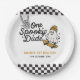 Halloween thème anniversaire "One Éffrayant Dude" avec un fantôme cool sur la planche de patinage et signe de tricot. Parfait pour une soirée anniversaire de enfant à thème Halloween éffrayante mais mignonne.