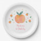 Ce design adorable présente une pêche à l'aquarelle peinte à la main avec des points de confettis en fausse feuille d'or.