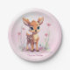 Assiettes En Carton Aquarelle Bébé Cerf Fleurs roses Plaque en papier