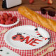 Aquarelle Ladybug sur blanc - Oh Quel plaisir d'être un 1er anniversaire Plaques de papier fête rouge, rose, noir, blanc