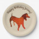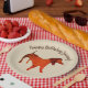 Un chien d'aquarelle mignonne sur des assiettes en papier. Couleur arrière - plan personnalisée. Parfait pour la fête d'anniversaire de garçon. Facile d'ajouter votre texte et votre nom.
