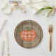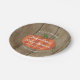Ces adorables plaques de papier baby shower d'automne rustique présentent un citrouille mignon et les mots "UN PETIT CITROUILLE EST EN ROUTE !" en texte blanc incurvé, et le nom de la future maman et la date de baby shower en blanc, le tout sur un arrière - plan en bois faux. Customisez tous les termes de cette conception.