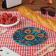 Assiettes En Carton Baies Art Nouveau en bleu et jaune