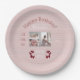 La plaque papier à thème d'anniversaire de la fille a des pantoufles de ballet, un arrière - plan de ligne douce qui vient dans n'importe quelle couleur, beaucoup de zones de texte personnalisables et, une zone photo de trois modèles à l'apparence douce pour télécharger vos photos dans. Mauve rose et canneberge