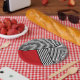Assiettes En Carton Bandes noires et blanches avec triangle rouge
