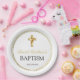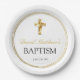 Assiettes En Carton Baptême bébé garçon élégant Croix blanche et or