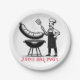 Add a touch of personal flair to your barbecue gatherings with our" BBQ Party - Personnalized Paper Plate. This disposable plate fonctiona black and white illustration of a chef next to a smoking barbecue grill, capturing the spirit of outdoor cooking. Above the design, the text "John's BBQ Party" adds a personalized touch, making it a perfect keepsake or venft for your barbecue gatherings. Whetheryou’re serving your favorite grilled dishes or displaying it as part of your party decor, this paper plate is sure to add character to any occasion.