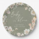 Assiettes En Carton Bébé en fleurs Sage Baby shower Fleur sauvage vert