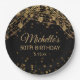 Plaques de papier personnalisées pour la fête d'anniversaire customisée pour le 50e anniversaire d'une femme avec des lampes à cordes dorées scintillantes et un bokeh pétillant sur un arrière - plan noir. Ce modèle est conçu pour que vous puissiez modifier n'importe quel texte, ce qui le rend parfait pour une fête célébrant n'importe quel âge. La couleur noire de l'arrière - plan est également personnalisable. Concevez vos plaques de papier pour vos propres couleurs de fête. Contactez-moi pour obtenir de l'aide sur vos personnalisations ou pour demander des produits Zazzle correspondants ou coordonnés supplémentaires pour votre groupe.