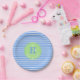 Pastel moderne Birthday Stripes Bleu ⎮ Blanc Livre Vert Plaque parfaite pour sa fête.