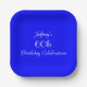 Un arrière - plan bleu vif décore cette plaque de papier unique et amusante. Bien que la valeur par défaut indique "60e anniversaire", vous pouvez facilement modifier le texte pour le nom, le nombre d'années et l'événement. Design simple et minimaliste. Choisissez carré ou rond. Nappes et serviettes en papier assorties disponibles sur zazzle chez SocolikCardShop. Tous droits réservés © 2015 Alan & Marcia Socolik.