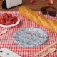 Assiettes En Carton Bleu violet ondes abstraites Plaques en papier