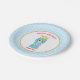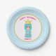Joyeuse plaque de papier princesse d'anniversaire avec une jolie petite fille sur blanc et turquoise avec motif ondulé. Le texte et le numéro peuvent être personnalisés.