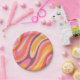 Boucles ondulantes Motif Abstrait Rétro Rose violet orange moutarde. Trippy 60s les années 70 80s esthétique psychédélique. Couleurs vintages et modernes. Unique artsy cool design contemporain boho ondulé chaîne super tourbillon ; lumineux, coloré, et avec une ambiance joyeuse. Par Kierkegaard Design Studio.