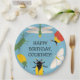 Ajoutez votre propre texte pour créer des fournitures personnalisées pour votre fête d'anniversaire ou d'autres événements spéciaux sur le thème des insectes ou des insectes. Ces plaques de papier présentent des illustrations de style rétro de bogues en vert, blanc, jaune, rouge et noir contre un arrière - plan bleu clair. Les graphiques comprennent des coléoptères, une libellule, une cigale, un papillon de nuit et une sauterelle. Votre message personnalisé apparaît dans le centre.
