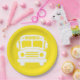 Assiettes En Carton Bus scolaire blanc sur Arrière - plan jaune