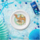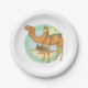 A cartoon illustration of a camel, loaded up read for a camel trek in Egypt. In the background there are the pyramids of Giza.