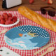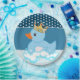 Voici une jolie plaque de papier de fête d'anniversaire qui présente notre canard en caoutchouc bleu (et il porte une couronne !) assis dans des bulles. Les pois blancs donnent un air festif. Disponible en différentes formes et tailles.