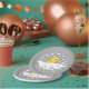 Adorable canard entouré de bulles sur un arrière - plan gris foncé pour un baby shower neutre. Retourner notre design sucré pour voir un canard de coordination pour une touche spéciale. Visitez notre boutique pour voir les articles de douche correspondants.
