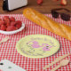 C'est l'heure de la fête ! Ce joli trio de flamants roses apportera un peu de plaisir tropical à toute fête. Dessiné dans le style d'illustration de dessin animé sur un arrière - plan à pois jaune et blanc clair.