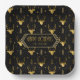 Cette plaque en papier présente un motif tendance de silhouettes de tête de cerf avec des bois incurvés, des flèches stylisées et de minuscules flocons de neige avec un effet texturé dans les nuances d'or sur un arrière - plan noir Texte "Happy Holidays" en option et un étiquette ont été fournis pour ajouter votre nom et/ou un autre texte. Faites une recherche ID861 à ID864 pour voir d'autres options de couleurs et d'autres produits dans cet ensemble moderne de design de Noël.