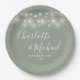 Assiettes En Carton Chaîne Lumière Signature Script Sage Mariage vert