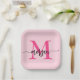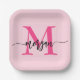 Assiettes En Carton Chaud rose moderne Script Girl Monogramme Nom