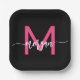 Assiettes En Carton Chaud rose noir moderne Script Girl Monogramme Nom