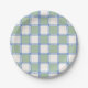 Assiettes En Carton Chèques peints en bleu pastel et vert