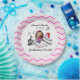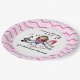 Un chiffre de bâton joueur de violon de fille dans une robe rose sur les plaques à papier de conception rose de chevron. Demande de client