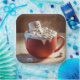 Un joyeux bonhomme de neige de marshmallow se détend dans une tasse vapeur de chocolat chaud, entourée de crème fouettée et de mini-guimauves