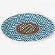 Assiettes En Carton Chocolat et Motif Chevron Turquoise avec Monogramm
