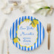 Ciao Bella Dolce vita Lemons rayures bleues Douche italienne plaque de papier personnalisée modèle, citrus citrons rayures bleues douche nuptiale plaque de papier monogrammée; été italien douche nuptiale plaque papier imprimé, vintage italienne plaque de papier de douche nuptiale, frontière ondulée douche nuptiale personnalisée plaque de papier nom