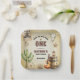 Saddle up et décorer pour une fête de premier anniversaire de cowboy à l'occidentale amusante. Un arrière - plan de parchemin patiné présente les éléments d'une fête d'anniversaire de rodéo parfaite, y compris un cactus, une guitare, une roue de wagon, des algues et bien plus encore ! Des ornements de style occidental décorent la plaque de papier pour créer un thème unique pour un premier anniversaire ou d'autres fêtes d'anniversaire d'âge. Disponible avec des produits correspondants.