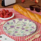 Joli blanc, lavande, vert sauge et motif de pissenlit turquoise.