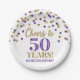 Assiettes En Carton Confetti violet doré, 50 ans d'anniversaire