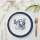 Design de la Fête du Bastille à l'aspect vintage avec un coq bleu gaulois, des roses, et les mots : Liberté, Egalité, Fraternité.
