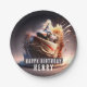 Plaques en papier d'anniversaire avec un gâteau d'anniversaire à thème de course automobile avec "Joyeux anniversaire", police audacieuse casquette. Customisez-le en ajoutant votre ou vos nom(s).