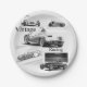 Une variété de voitures de course vintages représentées dans un style vintage.