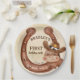 Cowboy fête d'anniversaire mignon cheval bébé dans un casquette feutre et un fer à cheval aquarelle personnalisé assiettes de fête modèle.
