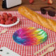 Aimez-vous la teinture à la cravate ? Célébrez les années 60 et les années 70 dans le style avec ces plaques de cravate arc-en-ciel! Photo d'une pièce de teinture à cravate avec le soleil brillant à travers pour rendre les couleurs vibrantes.