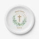 Assiettes En Carton Croix d'or Eucalyptus Wreath Baptême