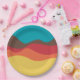 Un design composé de formes irrégulières comme des vagues ou des collines disposées comme un paysage avec une progression de bandes l'une derrière ou sur le dessus d'une autre jouant abstraitement avec la couleur et l'espace. Le design rappelle aussi très bien le son et la musique avec des formes comme des vagues et l'harmonisation des couleurs.