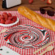Assiettes En Carton Design psychédélique rouge blanc et noir