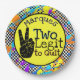 Deux légendes à quitter | Retro Old School Thème 2ème Anniversaire Checkerboard et Colorful Paint Splatter Papier Plaque Deux doigts avec le centre jaune néon, tableau noir et blanc Checkerboard. La couleur jaune centrée peut être changée en couleur désirée. ©Miss Sassy Designs