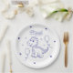 Dinosaur theme birthday party paper plate. Perfect for birthday cake, snacks, and party tables, this fun design features a cute blue line dinosaur surrounded by balloons and stars for a bright, cheerful look. It adds a playful touch to any kids’ birthday celebration and brings extra joy to the party setup. With its happy birthday banner and friendly style, this design is sure to make little guests smile.