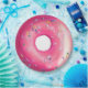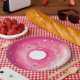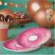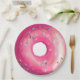 Plaques de papier amusantes avec une illustration délicieuse d'une grande beigne glacée rose dépoli avec des arrosages colorés.